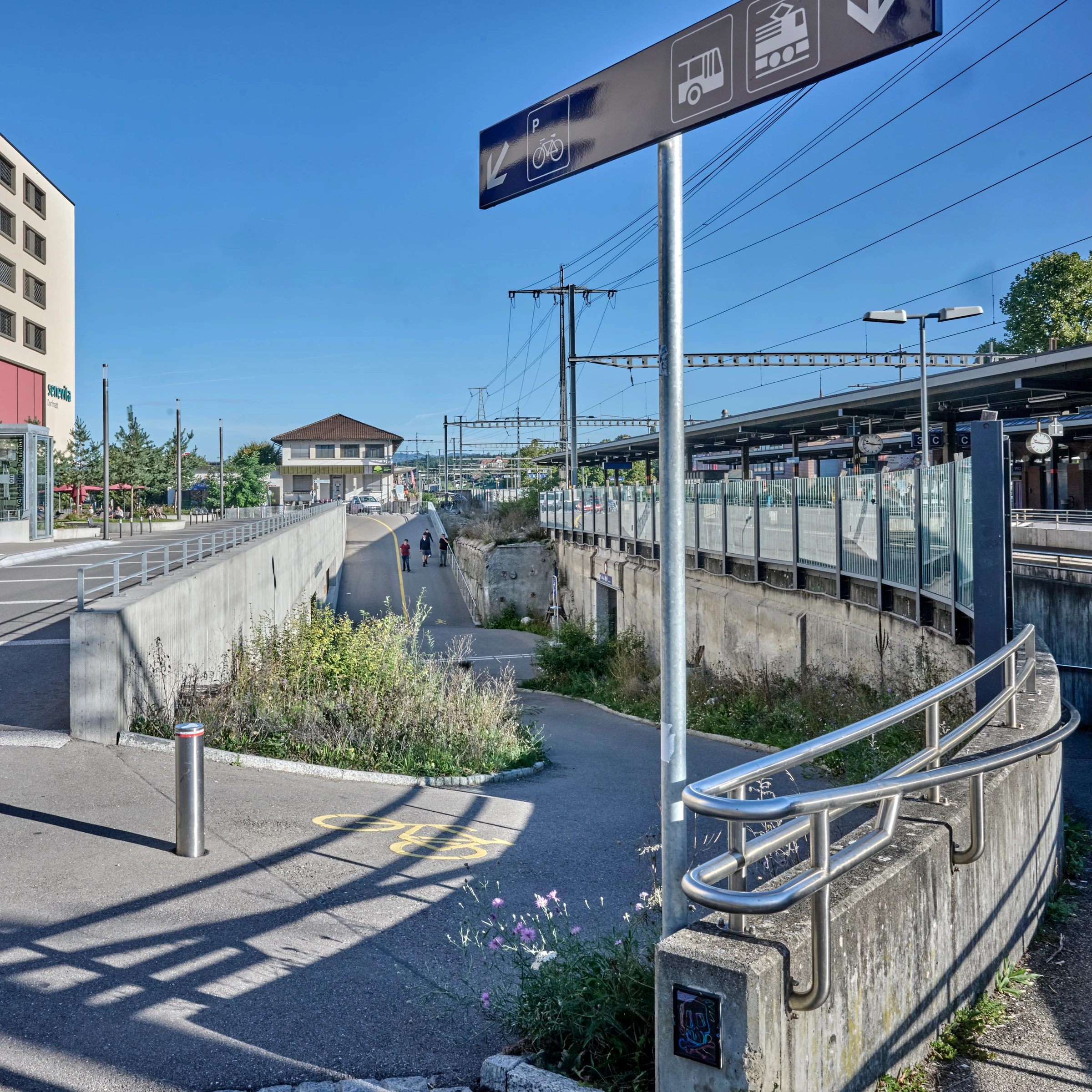Zusätzlicher Wohn- und Arbeitsraum entsteht nicht auf der grünen Wiese, sondern auf einem bereits genutzten Areal an bestens erschlossener Lage. Bestehende Infrastrukturen werden noch besser ausgelastet und gleichzeitig unbebaute Flächen ausserhalb des Siedlungsgebiets geschont. Mit publikumsorientierten Nutzungen entlang der attraktiv gestalteten Industriestrasse und neuen Verbindungen für den Fuss- und Veloverkehr stärkt das neue Quartier die gleisübergreifende Zentrumsbildung. Die zentrale Lage des neuen Quartiers mit kurzen Wegen bietet auch die Chance für ein nachhaltiges Mobilitätsverhalten.